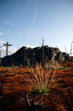 Après l'incendie de l'été 2022 en forêt de Broceliande dans le Morbihan, la végétation reprend peu a peu.