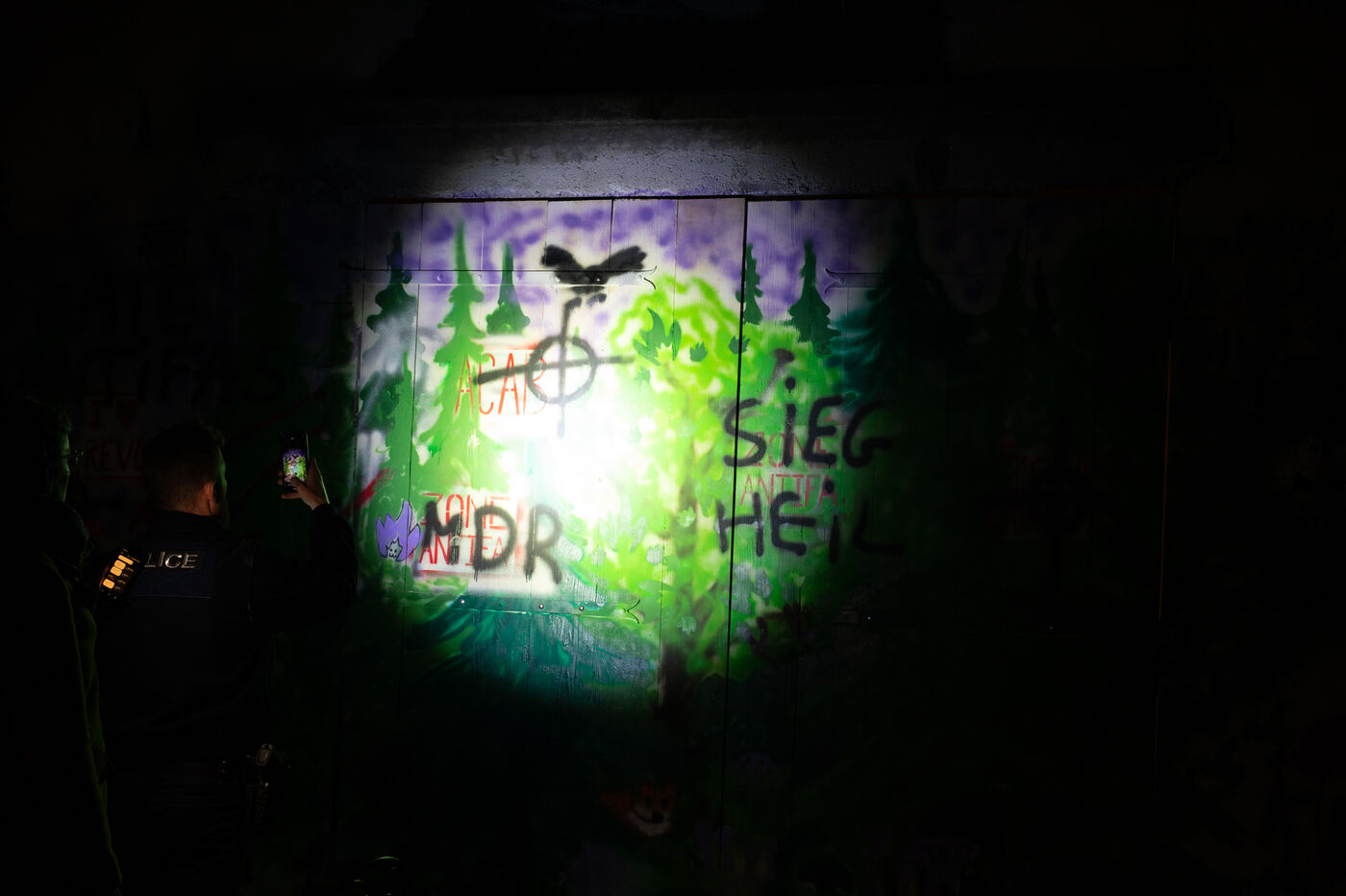Le lieu avait récemment été tagué d'inscriptions néo-nazies, dont des croix celtiques et croix gammées et autre "Sieg Heil"...