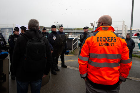 Jordan Bardella, who had come to meet fishermen following the ban on fishing in the Bay of Biscay in order to protect dolphins from accidental fishing, came up against a counter-meeting involving several left-wing organisations, including Solidaires, the PCF, LFI, Union Pirate, the CGT, FSU and anti-fascist activists, who were prevented from doing so by a police roadblock protecting access to the pontoons.