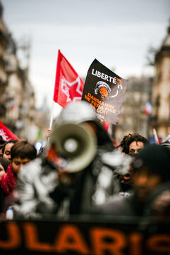 Manifestation et rassemblement devant le Conseil Constitutionnel à Paris, dans une ambiance festive aux slogans rôdés "Pierre par pierre, mur par mur, nous détruirons, les centres de rétentions", mais aussi empreinte d'une absolue gravité, d'émotion aussi. Alors que la détermination générale reste intacte, à l'heure où les nombreux.ses étudiant.e.s présent.e.s organisent le blocus dans leur établissement, le Conseil Constitutionnel, annonce la censure de 32 mesures, dont pour le motif de viol de la Constitution. De nombreux cavaliers législatifs sont en outre écartés. Même si la nouvelle était attendue, l'espoir se lisait dans les sourires des jeunes militants et militantes, en soirée sur les terrasses parisiennes, déterminé.e.s à poursuivre le mouvement, en soutien et en solidarité, et pour défendre leur.s camarades directement concerné.e.s.