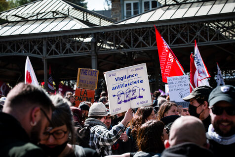 2000 personnes ont manifesté contre l'extrême droite et pour une justice sociale à Saint-Brieuc, le jour du 22ème anniversaire de l'accession du Rassemblement national au second tour de la présidentielle de 2002.