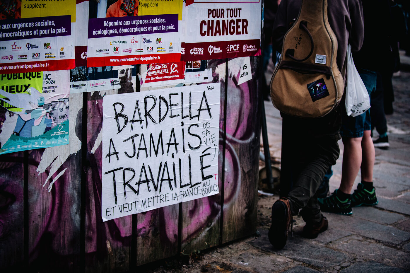 Manifestation sauvage antifasciste, peu après l'annonce des résultats du second tour des élections législatives, suite à une prise de parole du Collectif de vigilance antifasciste qui appelle à ne pas relacher la pression, face à une menace fasciste bien réelle, malgré les résultats et le soulagement teinté d'espoir qui se lisait sur les visages des manifestant.e.s présent.e.s.