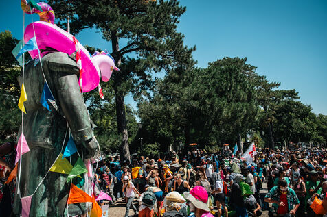 Manifestation revendicative, festive, poétique autant qu'esthétique, à vocation d'occupation du Port de la Rochelle, forte de la présence de 10 000 manifestant.e.s, à terre et dans l'eau, réprimée sur sa fin par les forces de l'ordre, malgré le caractère pacifique de l'action et la maitrise du collectif sans faille des organisations.