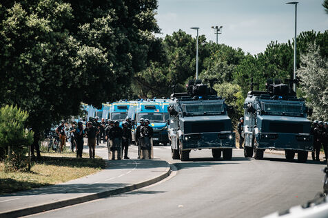 A protest, festive, poetic and aesthetic, aimed at occupying the Port of La Rochelle, with 10,000 demonstrators on land and in the water, repressed at the end by the forces of law and order, despite the peaceful nature of the action and the unfailing collective control of the organizations.
