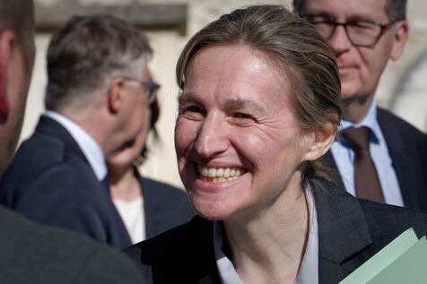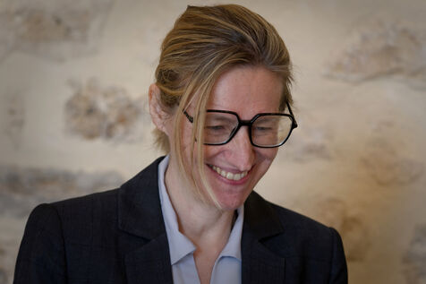 Astrid Panosyan-Bouvet, the French Minister for Labour and Employment, came to Sireuil in the Charente region of France to visit a cognac distillery and talk to those involved in the industry, which is being tormented by the international situation, including customs duties.