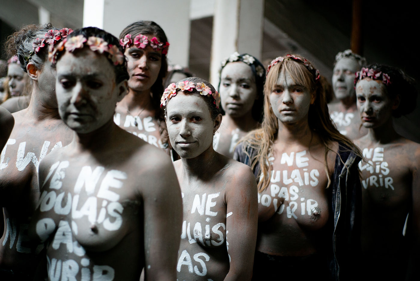 The Femen marched from Boulevard Saint-Jacques to the Montparnasse cemetery. Covered in clay, to resemble the women who died under the blows of their spouses who would come back to haunt the memories of a society that was too passive and a government with insufficient measures.
