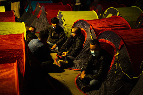 On the occasion of the night of solidarity, the Collectif Réquisition and Utopia 56 occupies the Place de la République, with more than 300 homeless women, men and children asking for their immediate accommodation. March 25, 2021, Paris (75) France. Photographie par Edouard Richard / Hans Lucas.