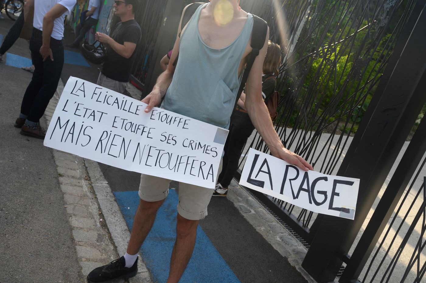 This gathering was also an opportunity to denounce the denial of justice in the face of police violence, particularly that concerning the death in Beaumont-sur-Oise in July 2016 of Adama Traoré, which occurred in circumstances similar to those of George Floyd. At the time of this gathering in Nantes, another one was taking place in front of the Paris Court of First Instance to denounce the "denial of justice" surrounding the death of Adama Traoré at the call of the collective "Justice for Adama".