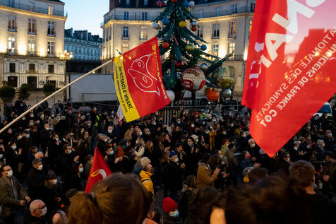 Mardi 15 décembre 2020, date officielle de sortie du deuxième confinement instauré suite à la deuxième vague épidémique de Covid-19, les acteurs du monde de la culture et du spectacle (cinémas, théâtres, musées) ont manifesté sur les marches de l?Opéra Graslin de Nantes pour protester contre la décision du gouvernement de prolonger leur fermeture au moins jusqu?au 7 janvier 2021 (annonce faite le 10 décembre par Jean Castex lors de la conférence de presse précisant les modalités du déconfinement).