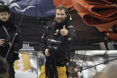 Arrivée du skipper Benjamin Dutreux (Imoca OMIA-Water Family) aux Sables d'Olonne le 29 janvier 2021. Il termine 9ème du Vendée Globe 2020.