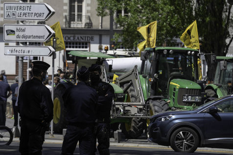 Le Ministre de l'Agriculture Julien Denormandie était à la Préfecture de Loire-Atlantique à Nantes le 27 avril 2021 pour tenir une table ronde avec les représentants des fédérations agricoles du territoire.