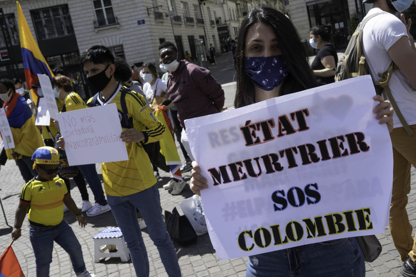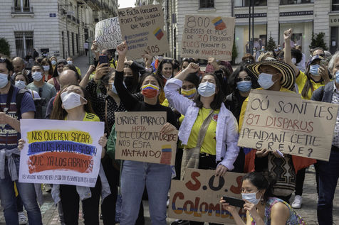 A hundred people gathered on May 8, 2021 in Nantes to support the Colombian people who have been protesting since April 28 against the government's tax reform, and who are facing an unprecedented repression (at least 26 dead and 800 injured between April 28 and May 3).