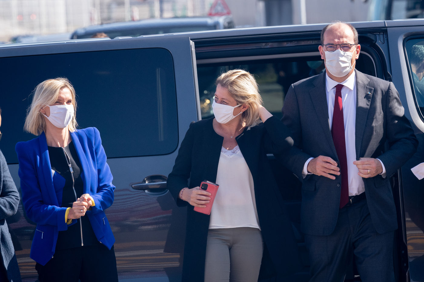 Prime Minister Jean Castex, accompanied by Barbara Pompili, Minister of Ecological Transition, and Agnès Pannier-Runacher, Minister Delegate in charge of Industry, visited the storage site in Saint-Nazaire on August 28, 2021, for various equipment (nacelle, towers, blades) destined for the wind farm.