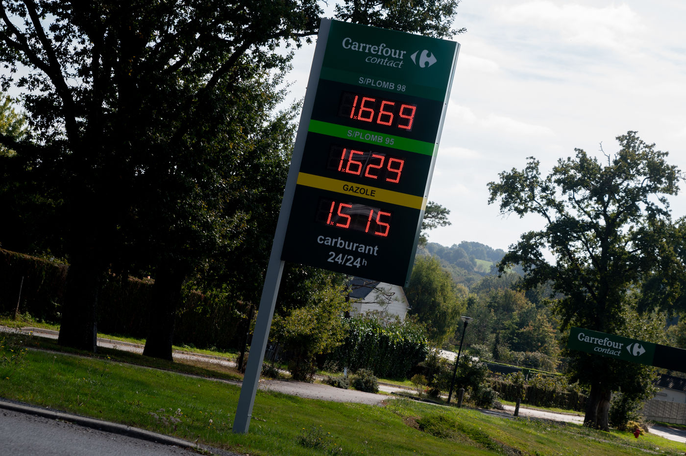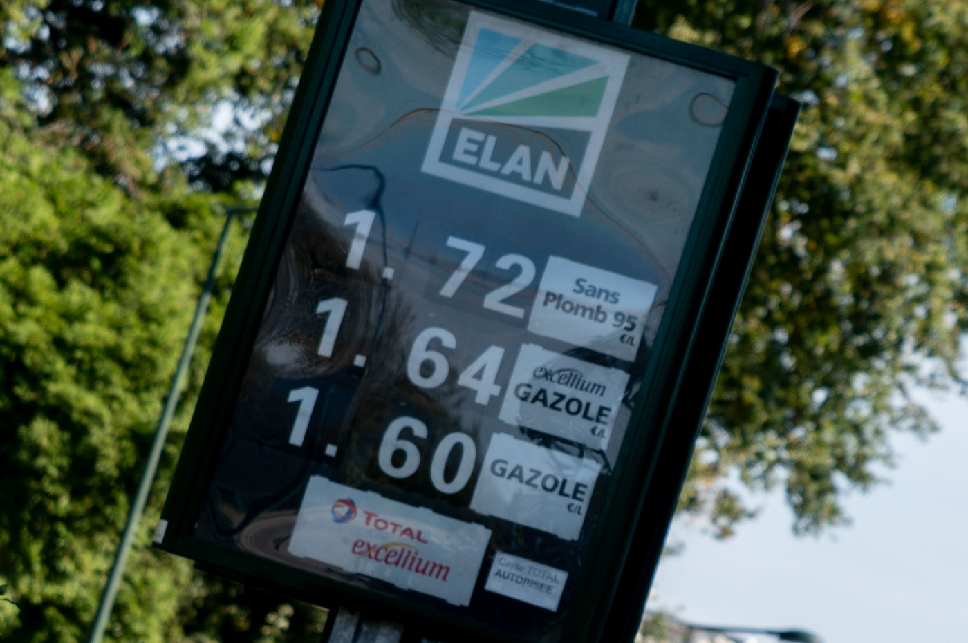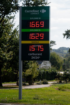 Inflation du prix gazole, qui s'affiche en moyenne à 1,5354€ le litre dans les stations-service de France, soit un nouveau record, après celui du 12 octobre 2018 (1,5331€), juste avant la crise des Gilets jaunes. Cette augmentation concerne également le Sans plomb 95-E10 qui atteint 1,60€ contre 1,56€ en août 2013. Photo d'illustration d'une station service de Nantes.