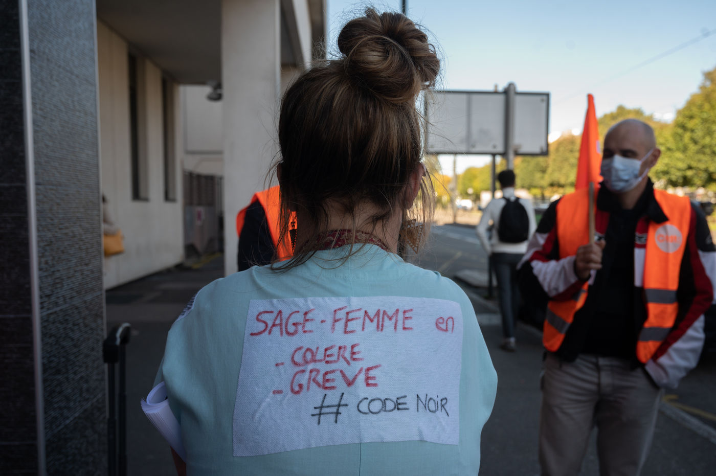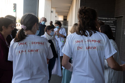 Les sages-femmes de la maternité du CHU de Nantes ont manifesté le 22 octobre 2021 pour réclamer une hausse de salaire et la reconnaissance d'un statut médical dans la continuité de la mobilisation nationale du 7 octobre à Paris.