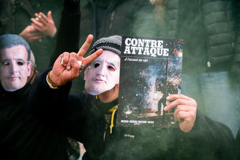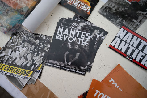 Anti-fascist activists made a mural in support of the independent media Nantes Révoltée under the procedure of dissolution activated by the Minister of Interior, Gérald Darmanin.