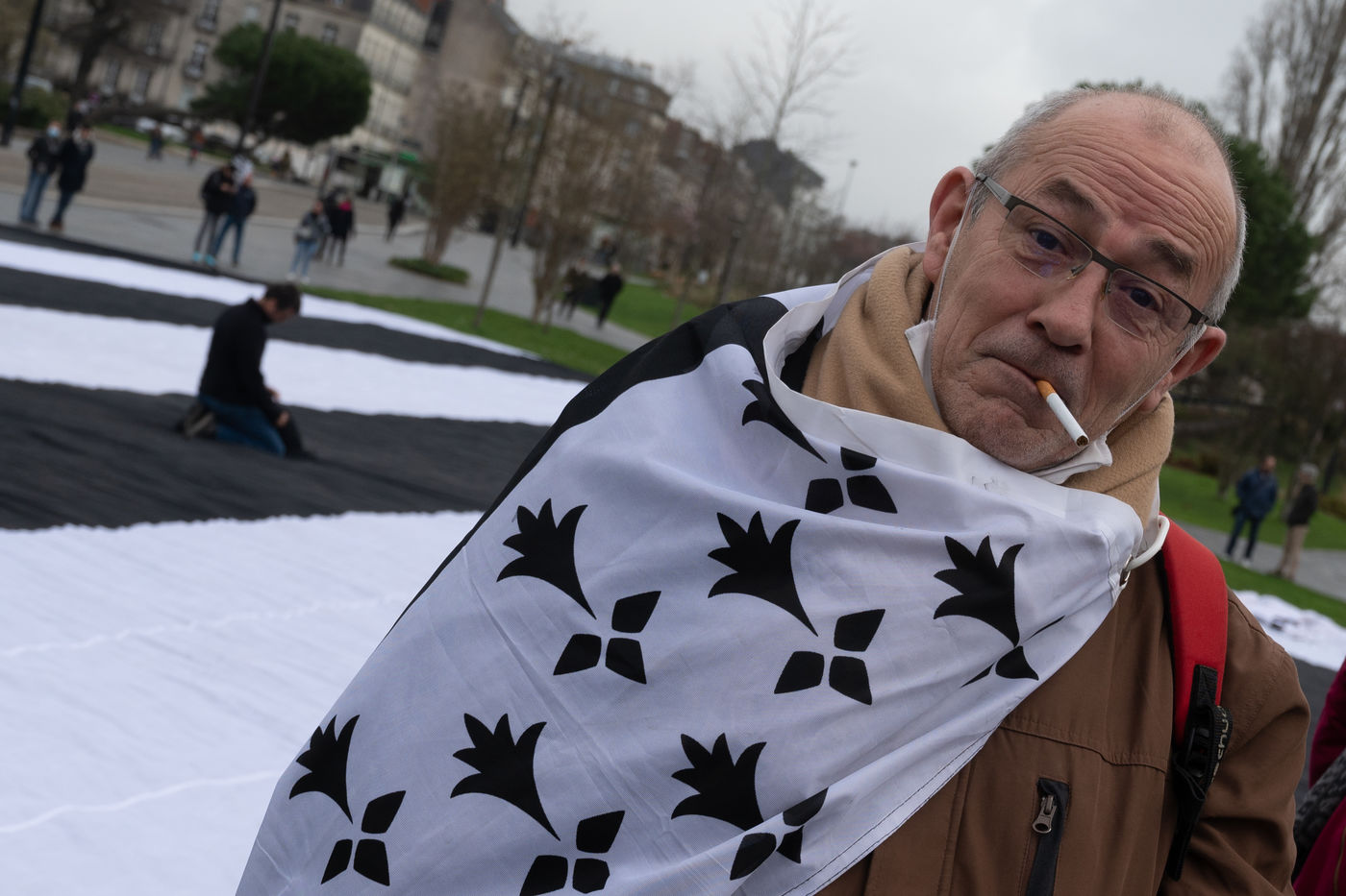 (gwenn-ah-du) de 1.400m² (le plus grand du monde) à Nantes. Cette action vise à obtenir de la part des candidats à la présidentielle des engagements concernant l?organisation d?un référendum des électeurs de Loire-Atlantique en 2024, sur le rattachement de leur département à la région Bretagne. Cette initiative est soutenue par 1.000 associations et 200 élus.