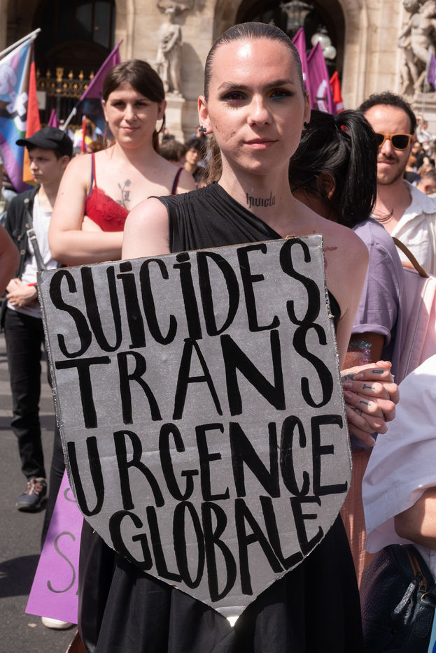 A l'occasion de l'ExisTransInter, les personnes transgenres, non-binaires et intersexes ont manifesté à Paris. Cette marche s'inscrivant dans un contexte réactionnaire et une précarité croissante, les organisateurs avaient cette année pour mot d'ordre