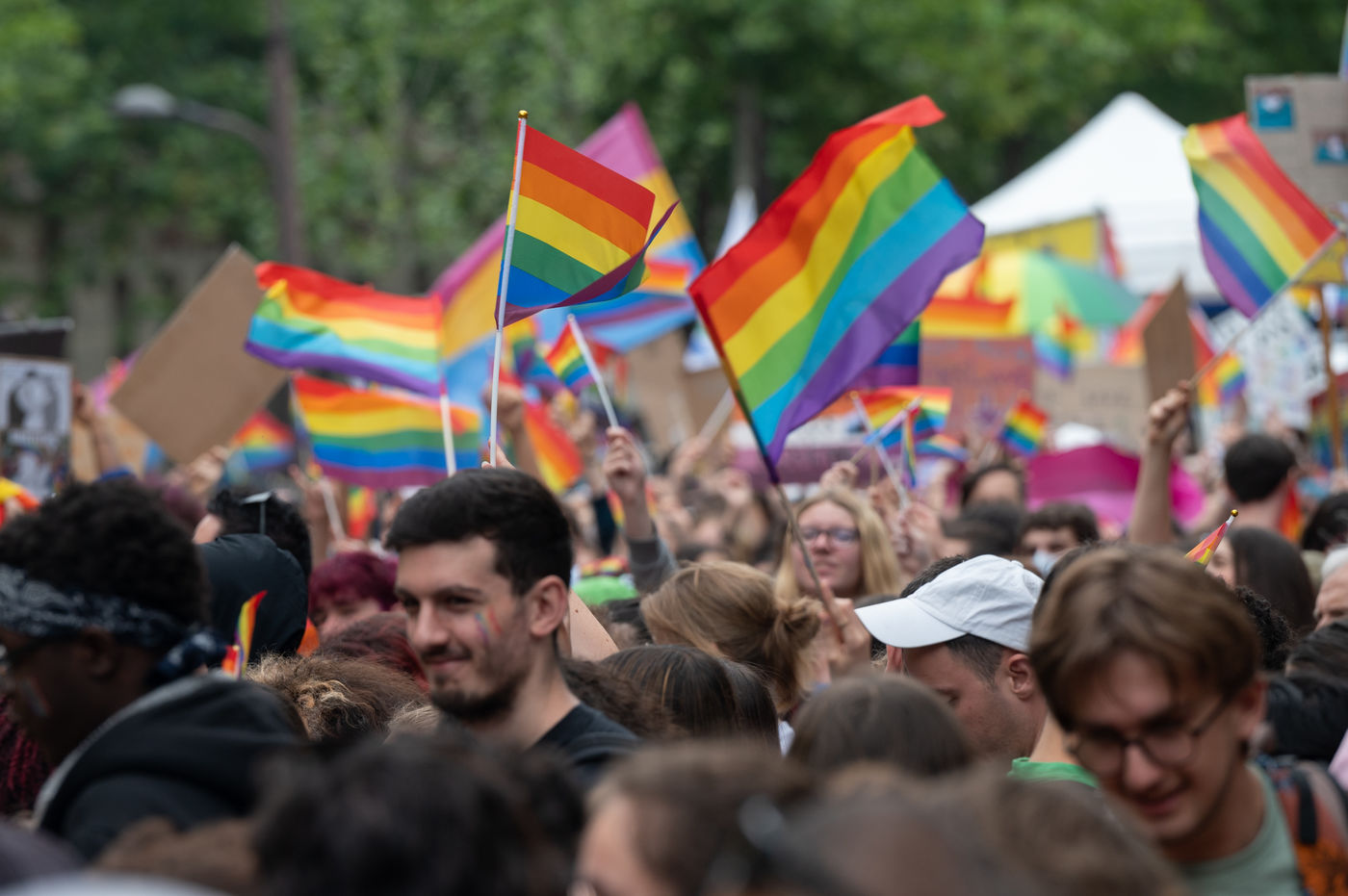 After a cancellation in 2020 because of Covid-19 and a reduced format in 2021, the Paris/Ile-de-France Pride March organised by Inter-LGBT returned to the streets of the capital to demand equal rights for heterosexual and LGBTQI+ (lesbian, gay, bisexual, transgender, queer and intersex) people. The festive and colourful procession marched from the Michel Bizot metro station to the Place de la République.