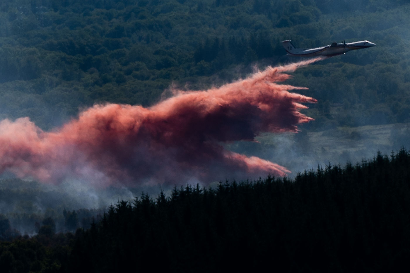 After the fires that destroyed more than 1,700 hectares in the Monts d'Arrée massif in Finistère, the firemen continue to monitor the area. Fires have been observed to reignite and these have required the dropping of retardant by a Dash bomber aircraft.