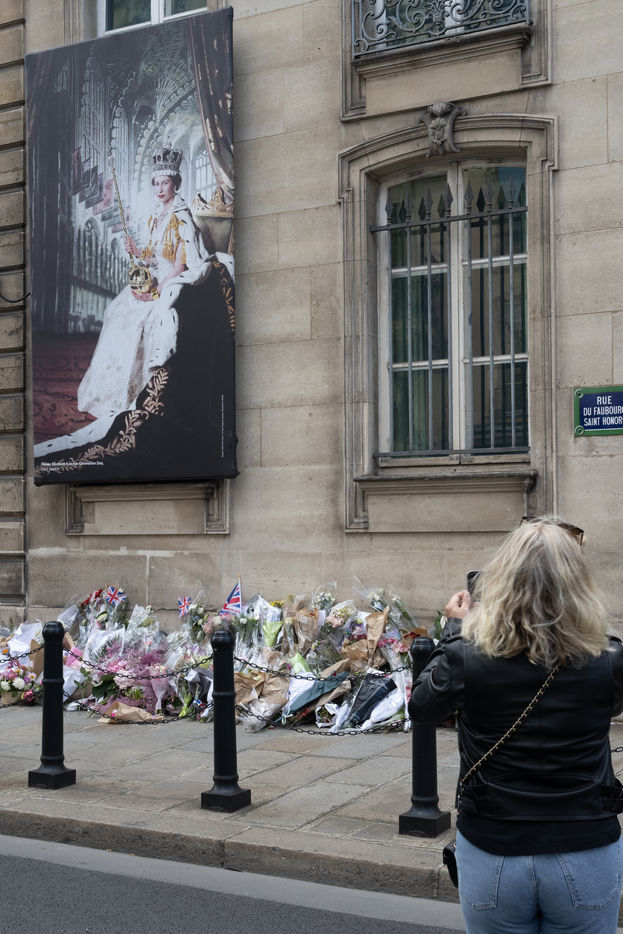 TRIBUTE TO ELIZABETH II IN FRONT OF THE BRITISH EMBASSY IN PARIS