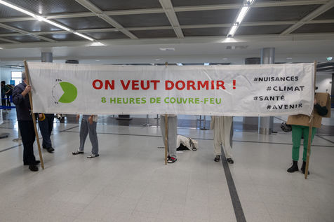 A hundred people dressed in pajamas took part in an action in the terminal of Nantes-Atlantique Airport aimed at demanding respect for the curfew introduced on night flights prohibited from midnight to 6 a.m. or even its extension from 11 p.m. to 7 a.m. The environmental associations Alternatiba and GIGNV, organizers of this happening, also pointed out the impact of air traffic on the environment and health.