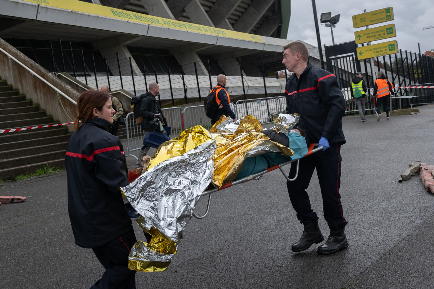 As Nantes prepares to host the Rugby World Cup in 2023 and the Olympic Games in 2024, the authorities have organized a multi-site terrorist attack simulation at the Beaujoire Stadium and at the Jonelière in order to prepare the coordination of the emergency services should such an event occur. This exercise mobilized 900 professionals and 300 volunteers: firefighters, police, gendarmes, Raid, GIGN, Samu, judicial police, magistrates, first aiders and nursing students.