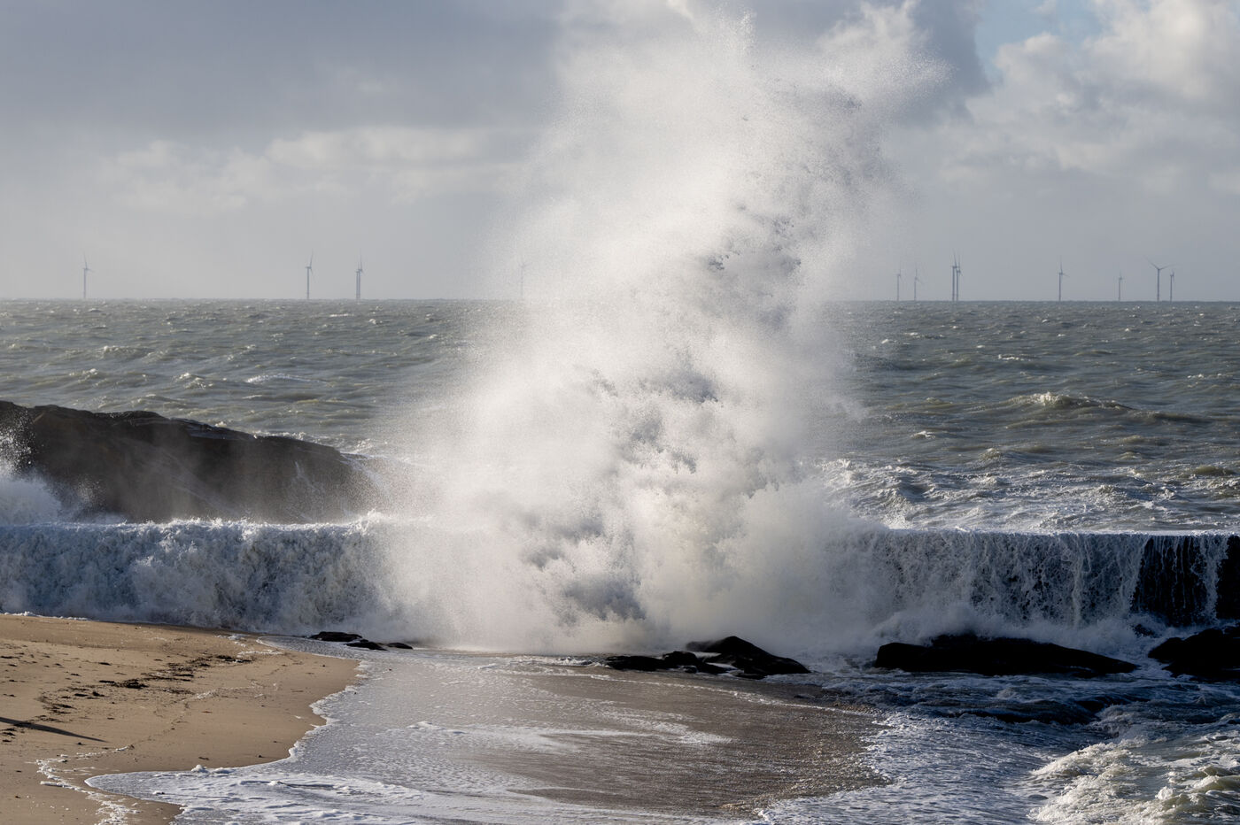 A series of photographs taken in Batz-sur-Mer illustrating the state of the ocean during the passage of storm Gérard in the Loire-Atlantique region, which was placed under orange vigilance for violent winds. The storm crossed the department during the night of 15 to 16 January 2023 with gusts reaching 130km/h on the coast, causing trees to fall and depriving 3,500 homes of electricity.