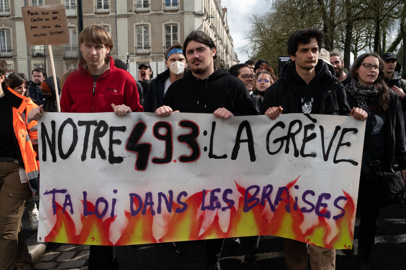Two days after the government used Article 49.3 to pass the pension reform without a vote in the National Assembly, thousands of people demonstrated in Nantes to denounce a forced passage and reaffirm their opposition to the postponement of the legal retirement age to 64.