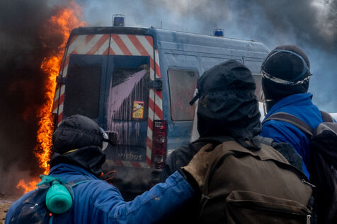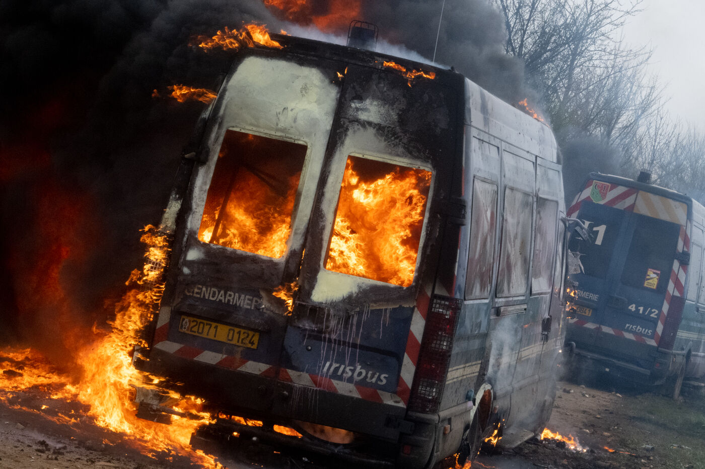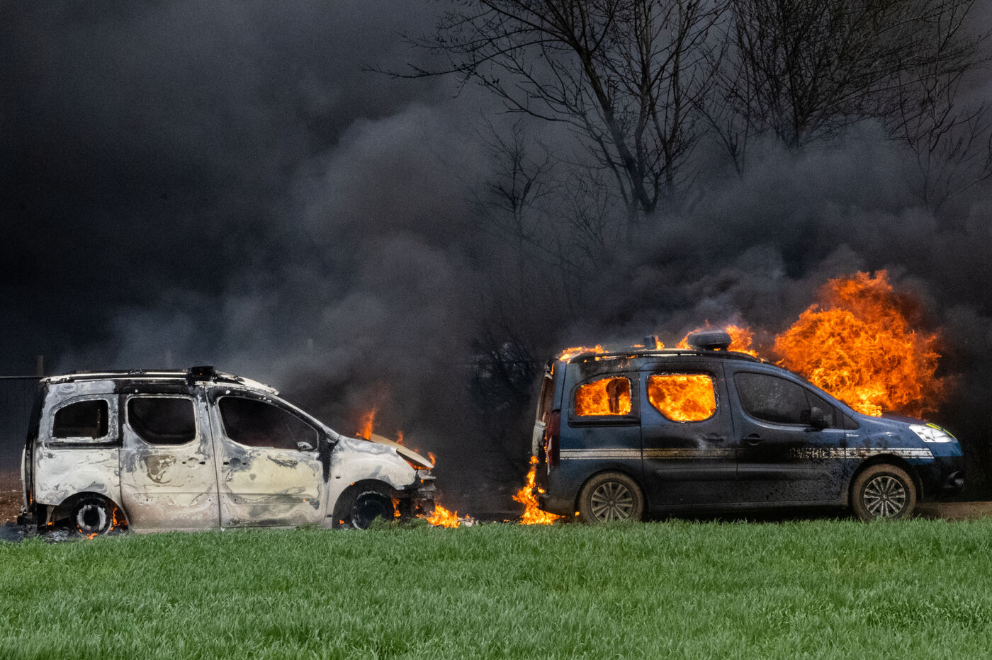 Violent clashes broke out near the Sainte-Soline basin construction site. 4 police vehicles were set on fire, and many people were injured, including 5 in absolute emergency (3 demonstrators, 2 gendarmes).