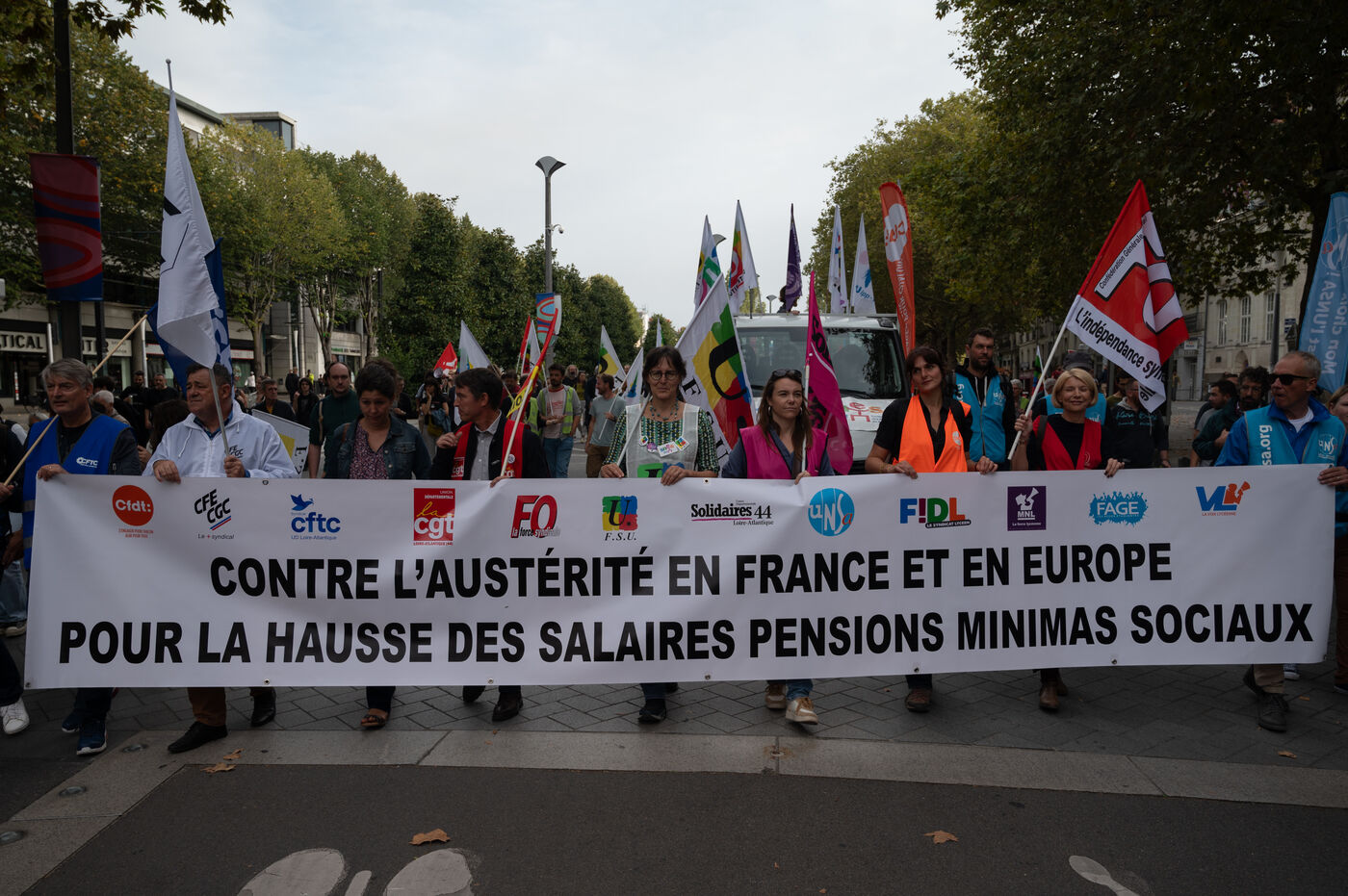 A thousand people demonstrated in Nantes in response to a call from the inter-union group against austerity and for higher wages and equal pay for men and women.