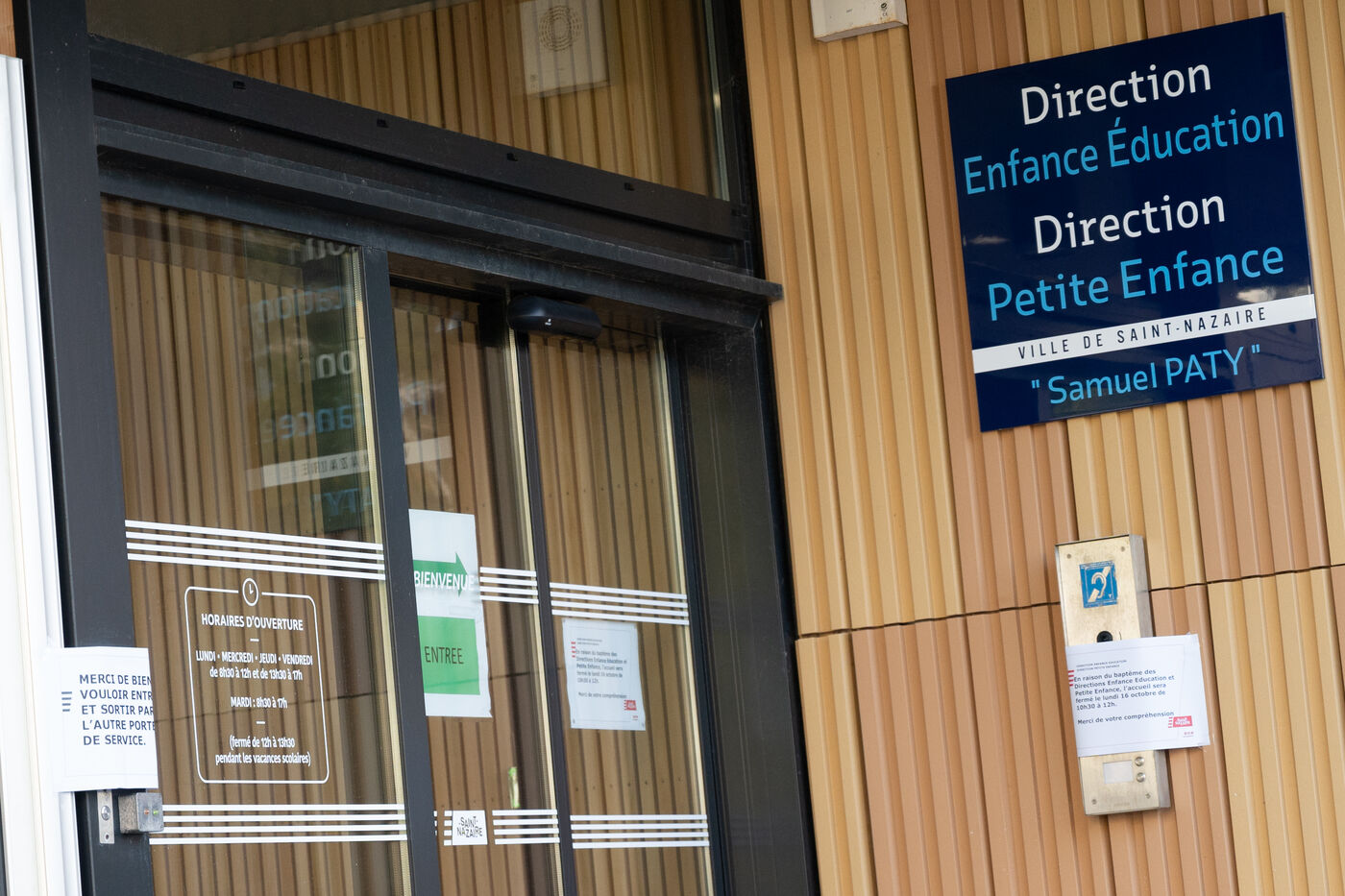 Trois ans après l'assassinat de Samuel Paty, professeur d'histoire assassiné à Conflans-Sainte-Honorine par un terroriste islamiste pour avoir donné un cours sur la liberté d'expression, la mairie de Saint-Nazaire a décidé de lui rendre hommage en baptisant en son nom le bâtiment consacré au pôle "Enfance-Education". Cette cérémonie d'inauguration s'est déroulée trois jours après l'assassinat de Dominique Bernard, un autre enseignant tué à Arras dans des circonstances similaires.