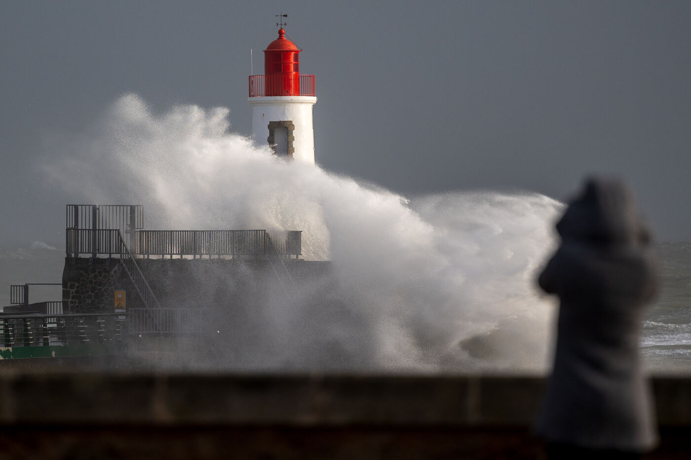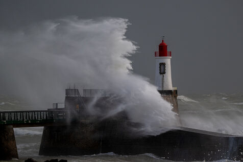 Two days after Ciaran, western France is hit again by a new storm named Domingos. Météo France forecasts that this new low will generate winds of up to 100km/h inland and 130km/h on the coast. Photo taken in Les Sables d'Olonne, Vendée (département under Orange vigilance)