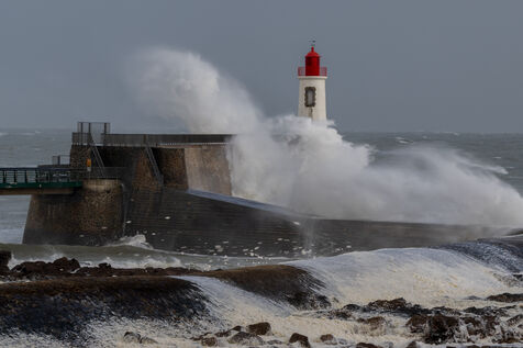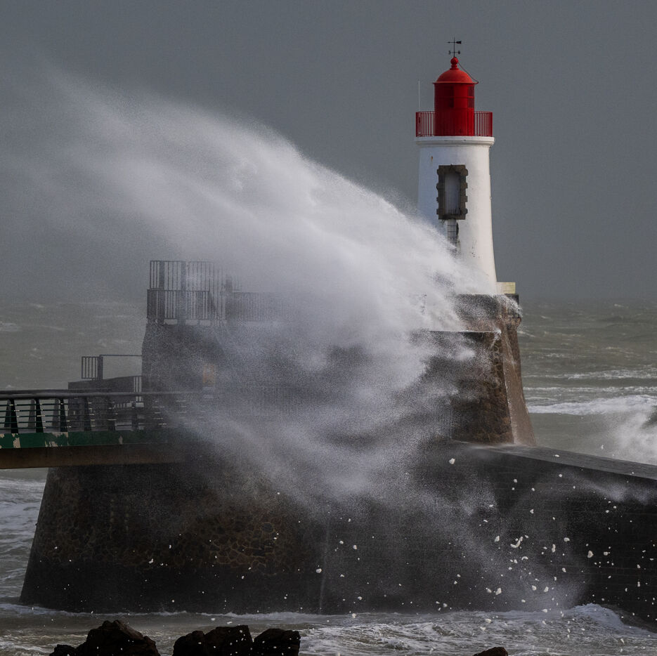 Deux jours après Ciaran, l'ouest de la France est de nouveau frappée par une nouvelle tempête nommée Domingos. Météo France prévoit que cette nouvelle dépression va générer des vents pouvant atteindre les 100km/h à l'intérieur des terres et 130km/h sur les littoraux. Photo prise aux Sables d'Olonne en Vendée (département placé en vigilance Orange).