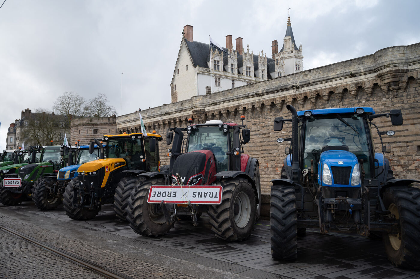 A la veille de l'ouverture du Salon international de l'Agriculture à Paris, les Jeunes Agriculteurs et la FNSEA de Loire-Atlantique ont mené une action coup de poing en stationnant 80 tracteurs et en déposant des panneaux d'agglomération retournés (reprenant leur campagne "On marche sur la tête") devant le Château des Ducs de Bretagne à Nantes. Ils dénoncent le fait que les annonces du gouvernement à l'issue de leur mobilisation de janvier ne soient toujours pas suvies d'effet et qu'Emmanuel Macron ait convier Les Soulèvements de la Terre au grand débat qui doit se tenir à l'ouverture du salon.