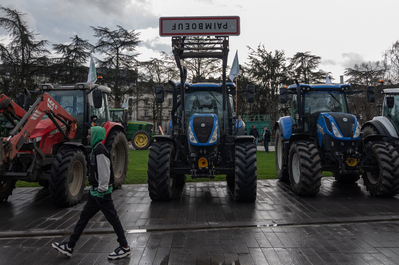 On the eve of the opening of the Salon International de l'Agriculture in Paris, the Jeunes Agriculteurs and the FNSEA of Loire-Atlantique carried out a fist-pumping action, parking 80 tractors and putting up upside-down town signs (echoing their "We're walking on our heads" campaign) in front of the Château des Ducs de Bretagne in Nantes. The farmers denounced the fact that the government's announcements following their mobilization in January have still not had any effect, and that Emmanuel Macron had invited Les Soulèvements de la Terre to the great debate scheduled to take place at the opening of the show.