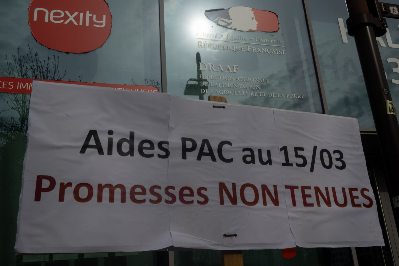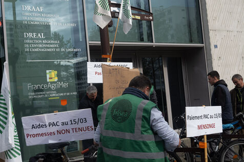 Les Jeunes Agriculteurs et la FNSEA ont appelé leur adhérants à se rassembler devant les locaus de la DRAFF de Nantes. Les deux syndicats agricoles déplorent que la promesse faite par le gouvernement de verser toutes les aides de la PAC 2023 avant le 15 mars 2024 n'a pas été tenue.
