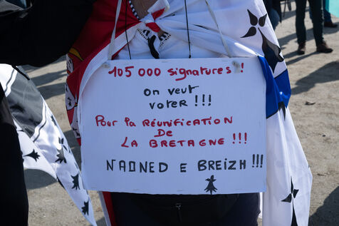 Bretagne réunie, Breton associations and political parties demonstrated on Saturday 12 October 2024 in Nantes (France) to urge MPs and senators to open the debate on the attachment of Loire-Atlantique to Brittany. The organisers point out that 105,000 residents of the département signed a petition in 2018 calling for citizens to be consulted on the issue. Loire-Atlantique has been administratively attached to the Pays-de-la-Loire region since 1955.