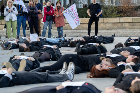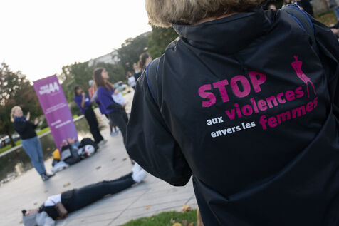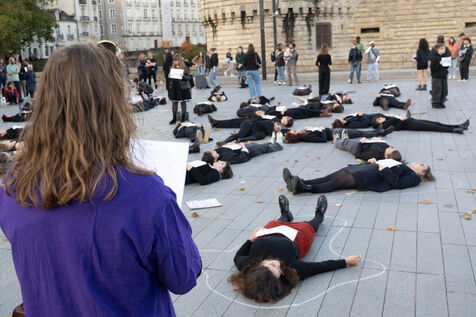The feminist collective Nous Toutes de Loire-Atlantique organized a happening in the form of a die-in on Saturday, October 19, 2024 in Nantes (France) to pay tribute to the women who have been victims of feminicide since the start of the year.