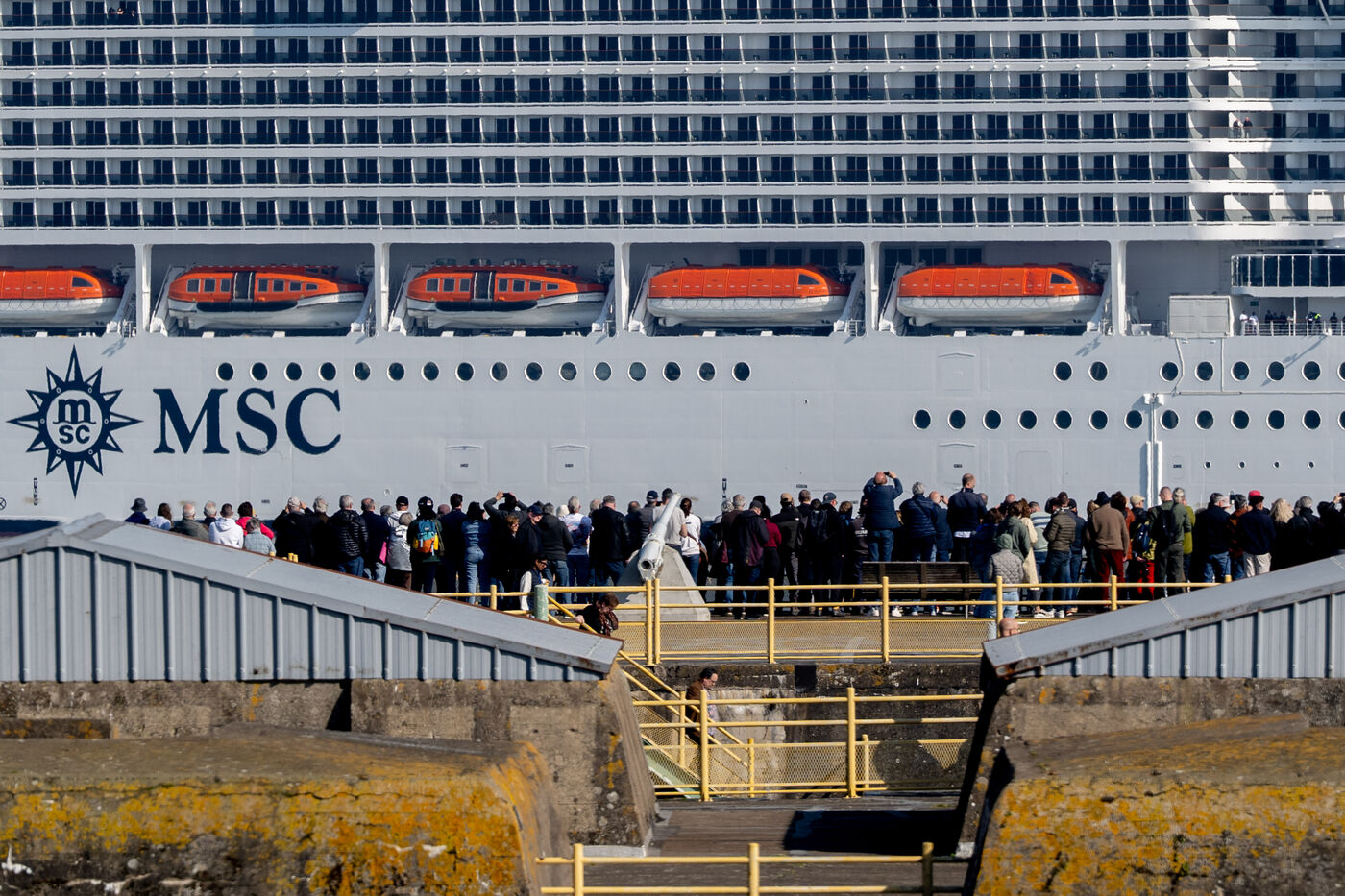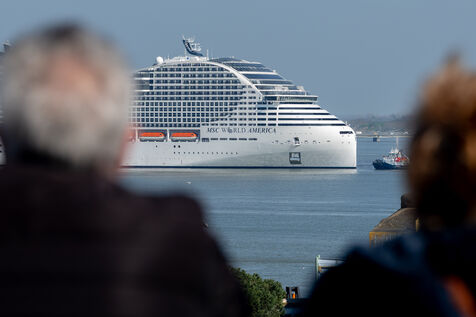 Le paquebot MSC World America, assemblé par Les Chantiers de l'Atlantique a quitté Saint-Nazaire (France) jeudi 27 mars 2025. Pour l'occasion, une cérémonie de livraison entre les dirigeants des Chantiers de l'Atlantique et l'armateur MSC s'est tenue en présence de Marc Ferracci, Ministre chargé de l'Industrie et de l'Energie, Marc Ferracci.
