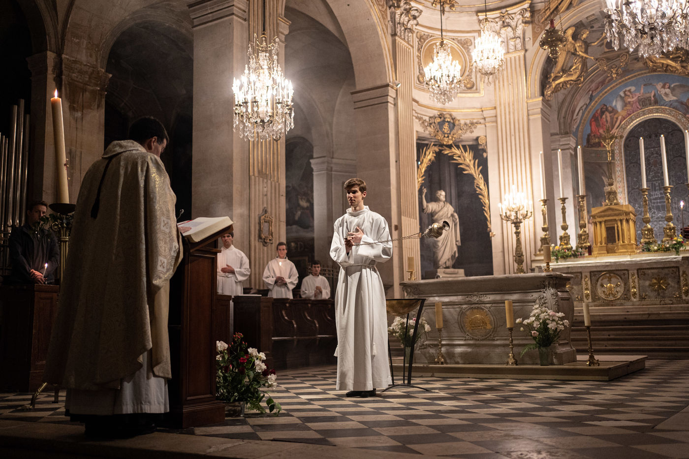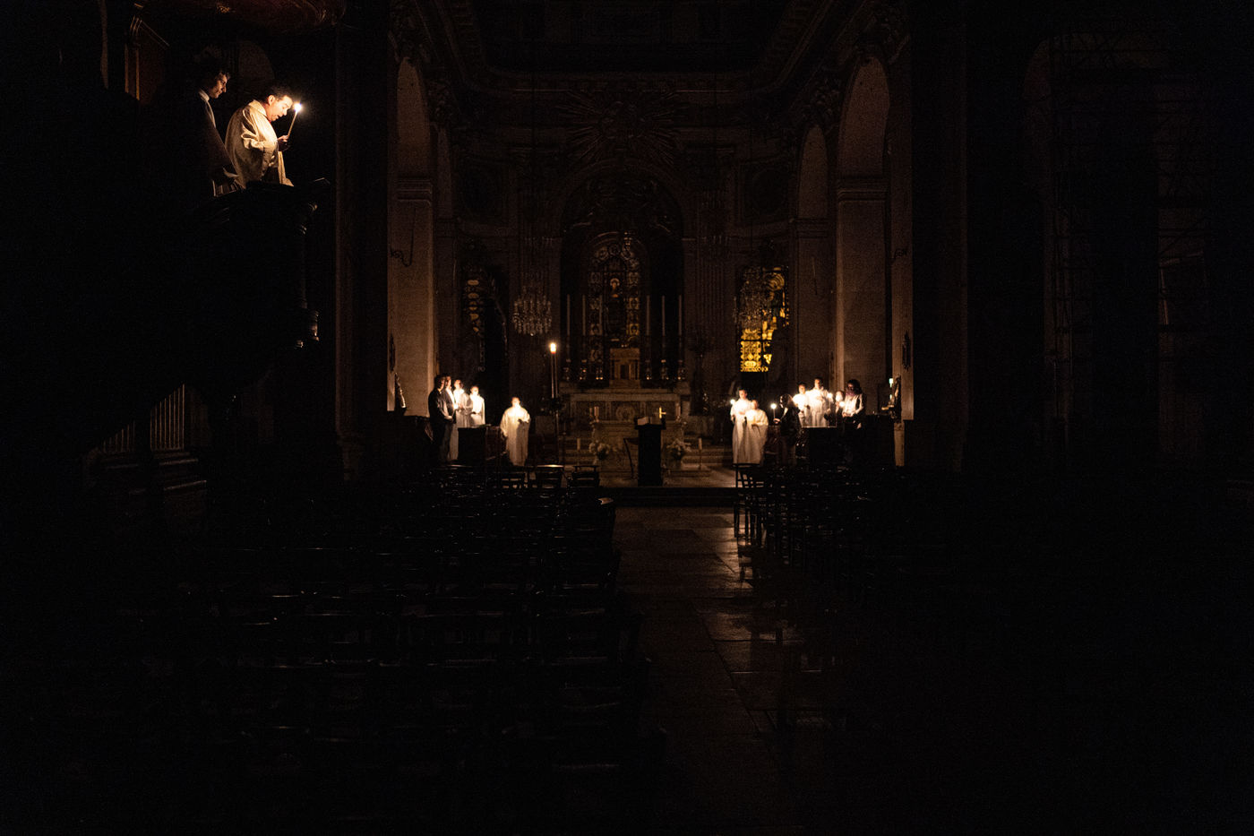 L'Église Saint-Louis en l'Île célèbre la Veillée Pascale, malgré l'impossibilité d'accueillir ses paroissiens.