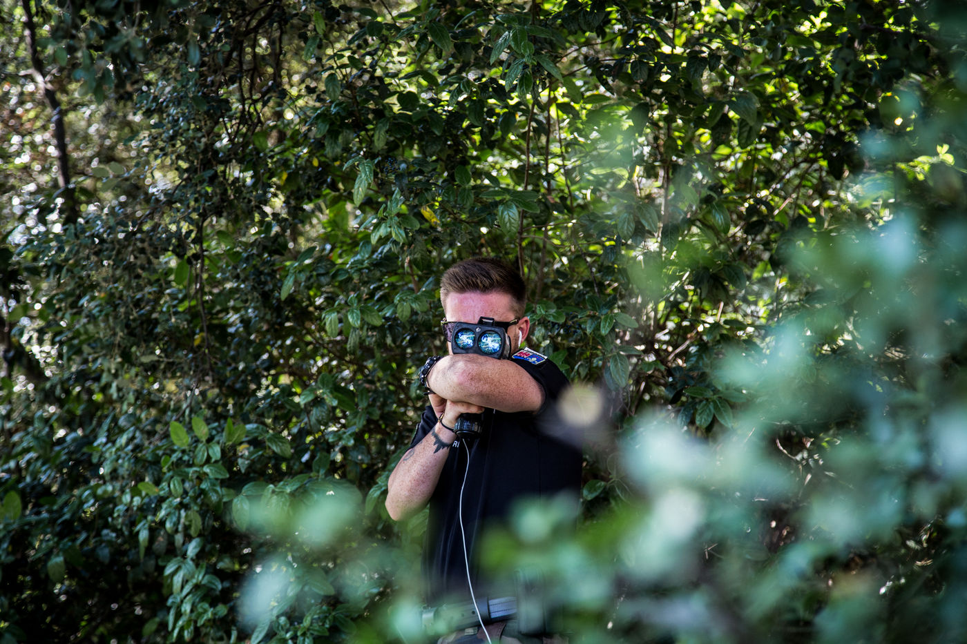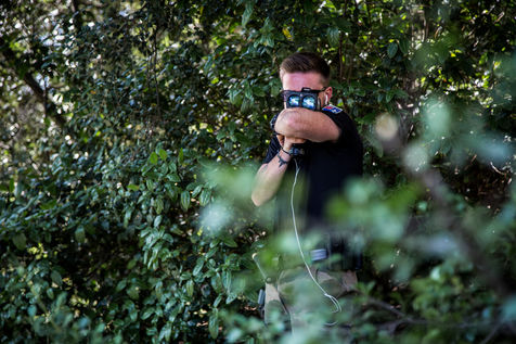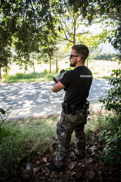 Un opérateur de la Gendarmerie Nationale effectue des controles de vitesse sur une route departemental limitee dorenavant a 80 km/h.