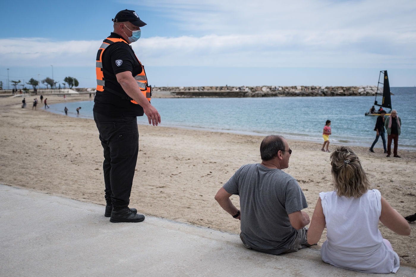 Une société de securité privée Archange Sécurité Privée organise le respect des consignes données par la ville de Toulon pour la réouverture des plages, à savoir, l'interdiction de s'asseoir sur le sable, de jouer avec un ballon, d'être sur la pelouse. Ils organisent egalement les horaires (8h00-18h00) d'ouverture et de fermeture.
