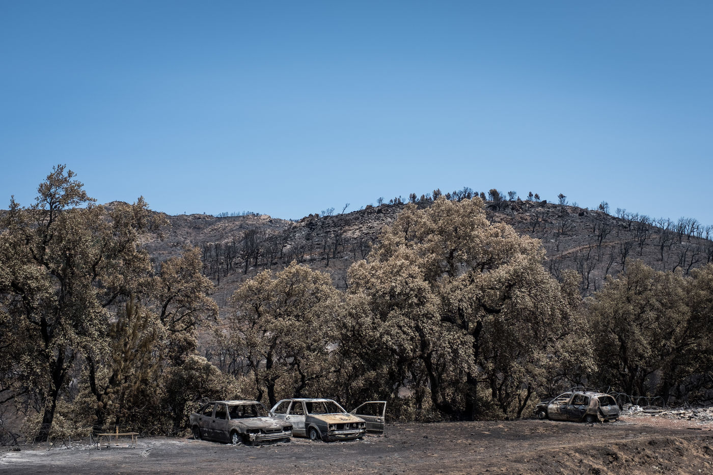 Reportage après le passage du feu de foret de Gonfaron qui a brulé près de 7000 hectares et causé deux morts au Val De Gilly (Grimaud 83).