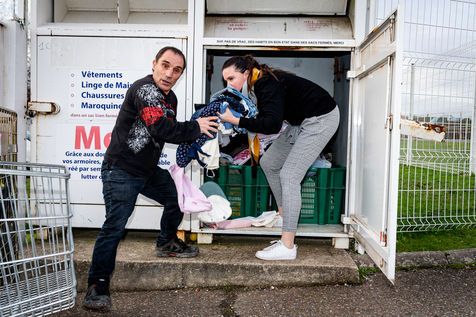 Work of the volunteers in the Emmaus association of Blois. Recovery, sorting, repair, recovery, recycling and sale of objects donated by individuals.