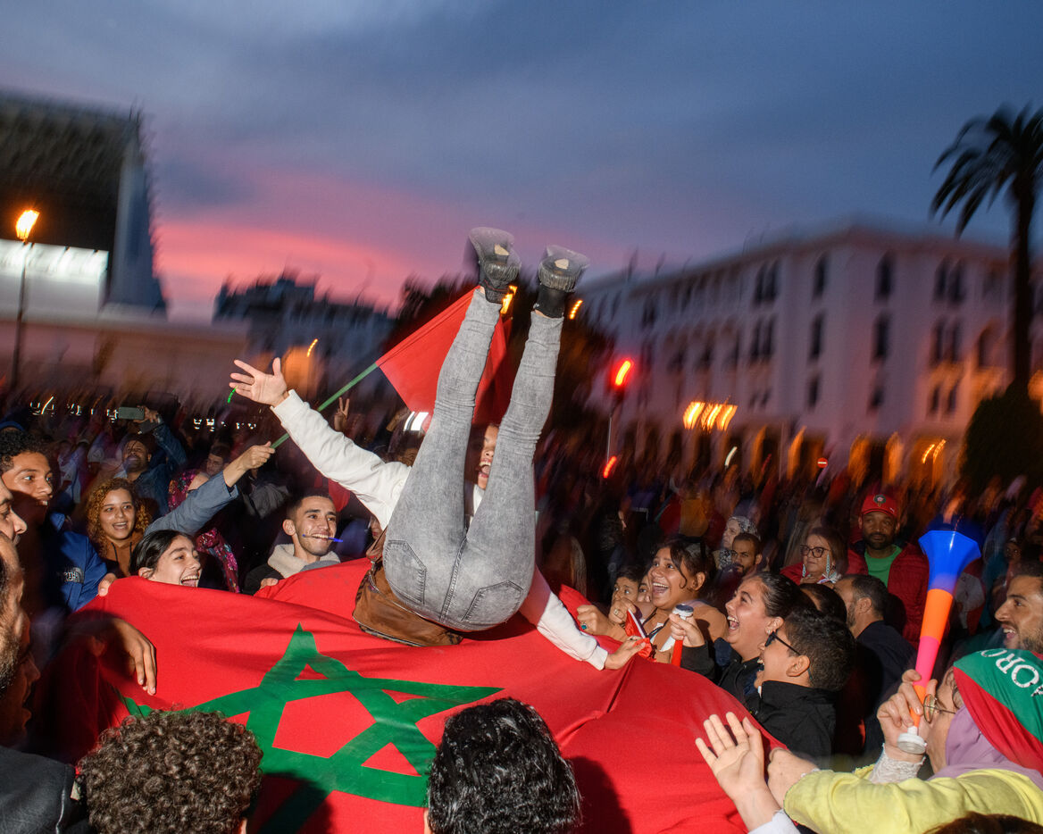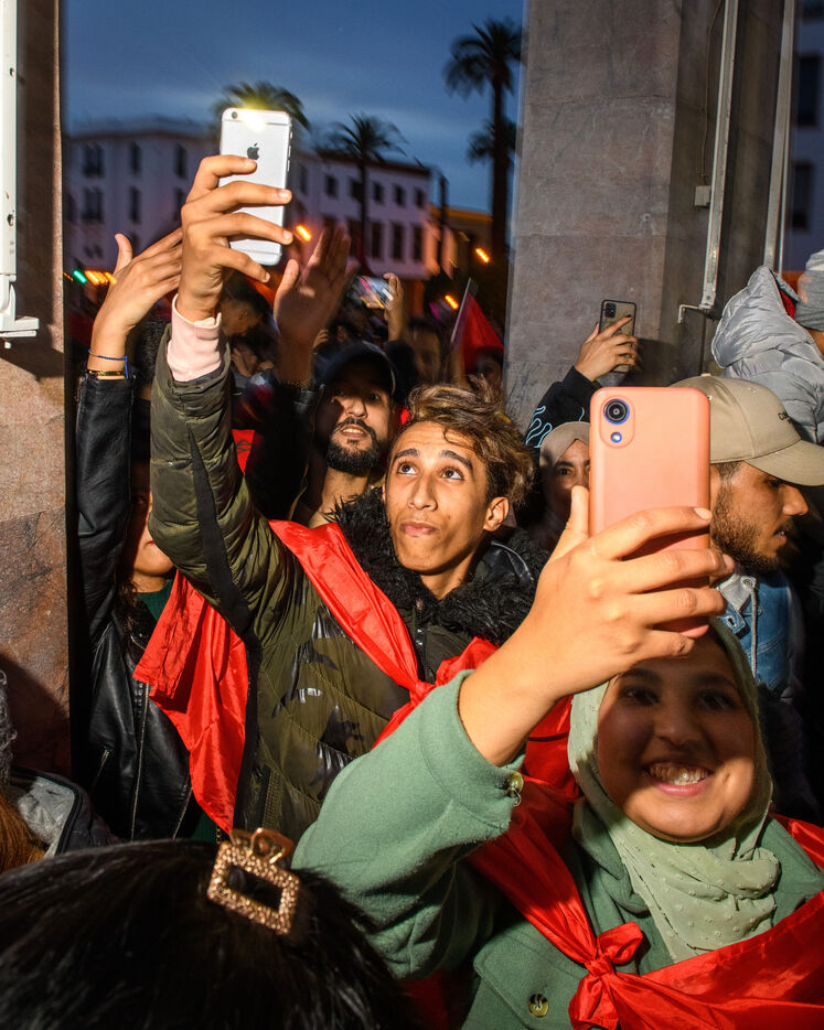 Morocco's supporters celebrate the victory against Portugal in the quarterfinals of the World Cup. In the streets of Rabat, a large crowd gathered in the city center on avenue Mohamed V, shouting and singing. A large number of women are wearing the colors of the Atlas lions.