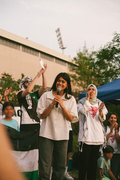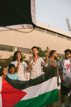 Surrounded by Palestinian flags and engaged citizens Rima Hassan expressed her solidarity with the Palestinian people emphasizing her commitment to social justice and human rights