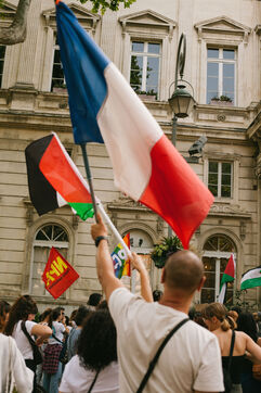 On the square, Palestinian, French, and LFI (La France Insoumise) flags flew alongside a rainbow flag bearing the word “Peace.” Demonstrators held signs calling for solidarity with the Palestinian people and respect for international law. Activists, citizens, and supporters urged the French and European governments to take firm action to secure the release of those detained and to condemn violations of maritime law and human rights.