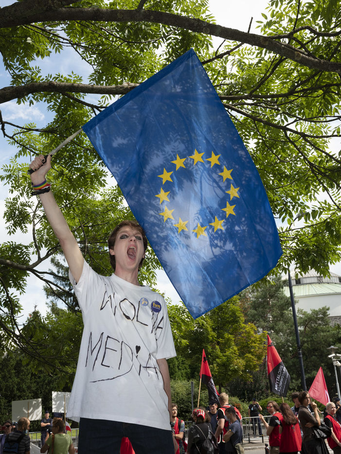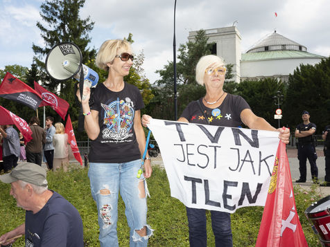 Le parlement polonais(SEJM) a adopté de manière irrégulière, l'interdiction aux medias polonais d'avoir un propriétaire non-européen. La loi interdit la chaine privée TVN, critiquant ouvertement le gouvernement conservateur. Des manifestants se sont rassemblés sous le parlement, de manière spontanée.