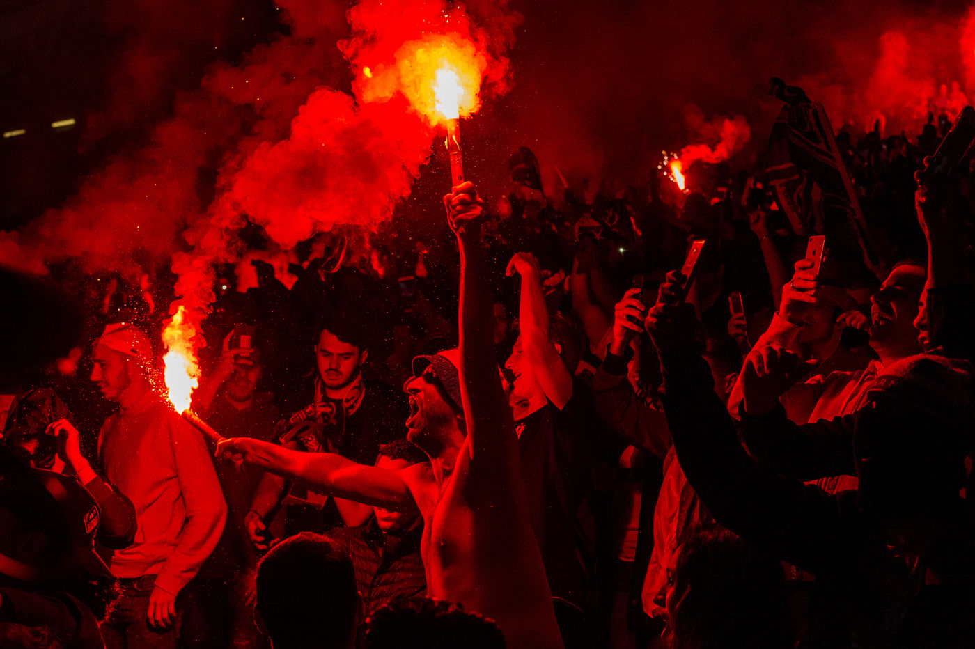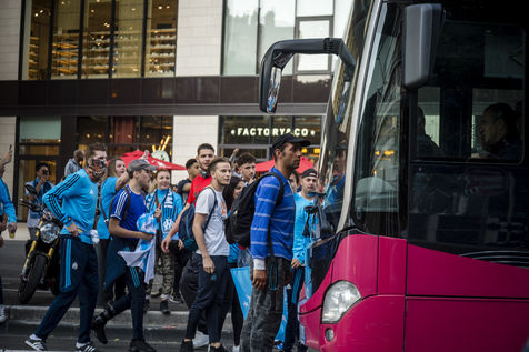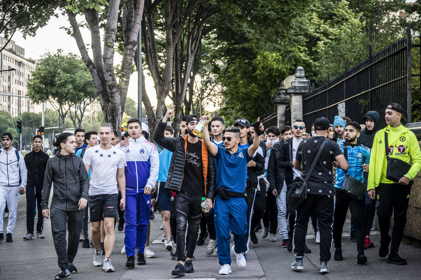 Report on the broadcast, at the Velodrome stadium, of the final of the Europa League between Olympique de Marseille and Athletico de Madrid. The Match was broadcast on a giant screen, which was installed in the middle of the pitch of the Vélodrome stadium in Marseille. More than 5000 free seats were distributed to allow the many supporters to support their team in their usual stands. 15 May 2018